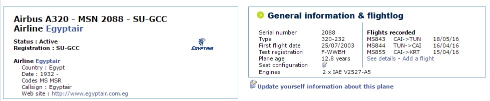 Пассажирский самолет А-320 SU-GCC авиакомпании Egyptair, рейс MS 804, следовавший из Парижа в Каир, пропал над Средиземным морем.