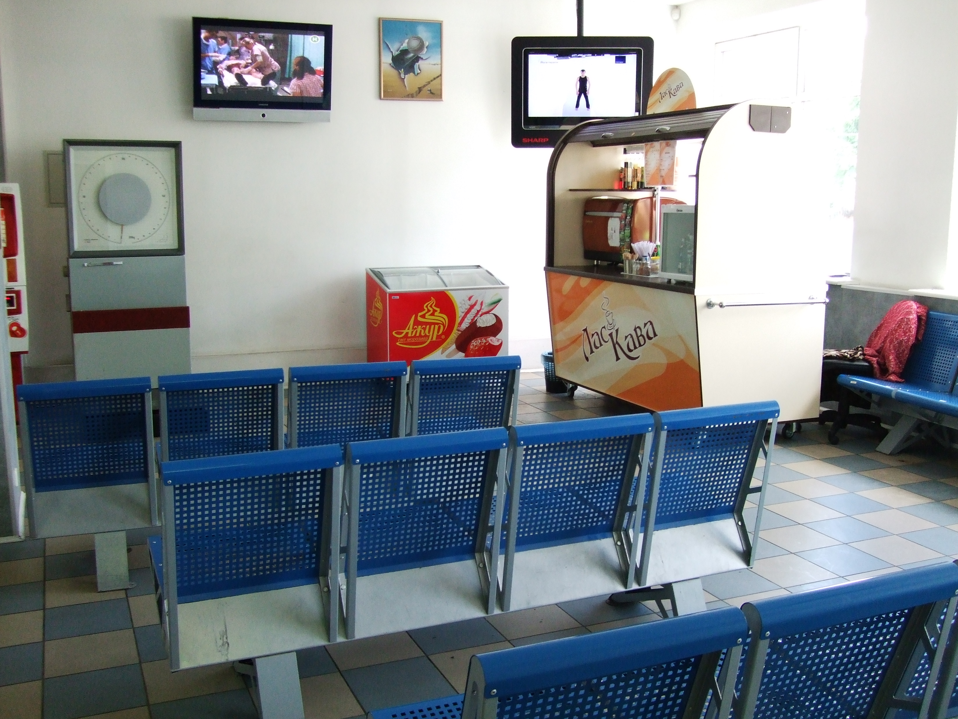 Терминал В- после перепрофилирования на внутренние рейсы, выглядит пустынно,выключены информационные табло (неудобно),небольшие изменения на прилетных гейтах,тролейбус на Ж/Д вокзал так и незапустили,правда обновили транспортные таблички (с вкраплением английского)