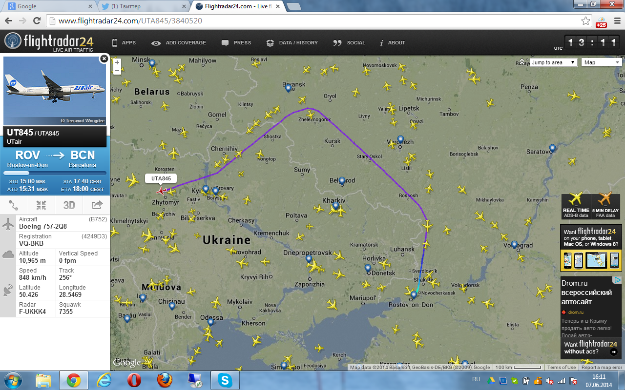 Хтось бачив взагалі як літаки UTair літають зараз над донбасом? навіть транзитні. Я такого не пам'ятаю, може й літають.