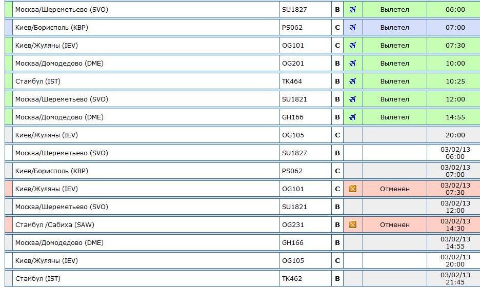 ничего не понимаю - на сайте симферополя рейсы отменены, на в жулянах показывает как вылетевшие и приземлившиеся строго по расписаниюgelata писав:Внезапно