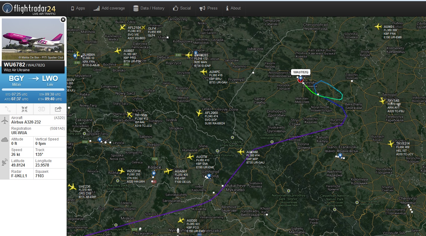 Тоді що за захід такий? Над Бурштином він був з стандартним для того польоту ешелоном 350. Якось не дуже логічно бути за 25nm від аеропорту призначення і не почати зниження. Причому що курс то був на UKKK, а не на UKLL