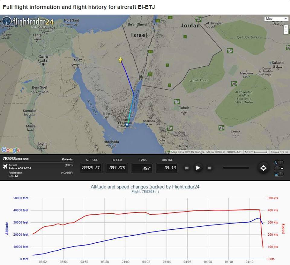Жалко людей. По данным египетской стороны, самолёт пытался зайти на посадку на аэродром Эль-Ариш. Тут проблема не в террористах скорее всего (если это не бомба непосредственно на борту), а в том, что Когалымавия уже доживала и так последние свои дни в связи с задолженностью, там и техники бастовали и зарплату им не выплачивали. Такие дела. Печально за людей.