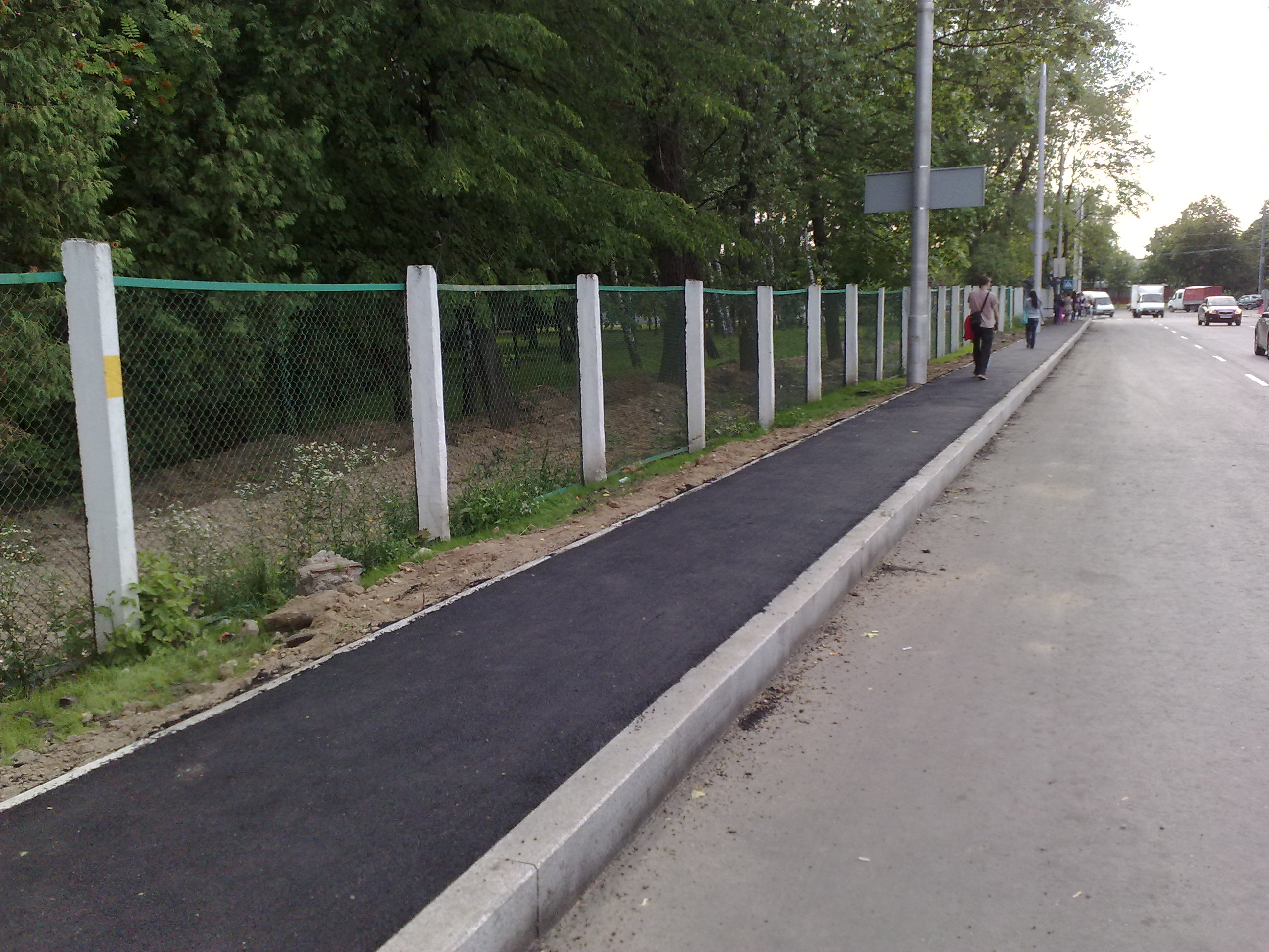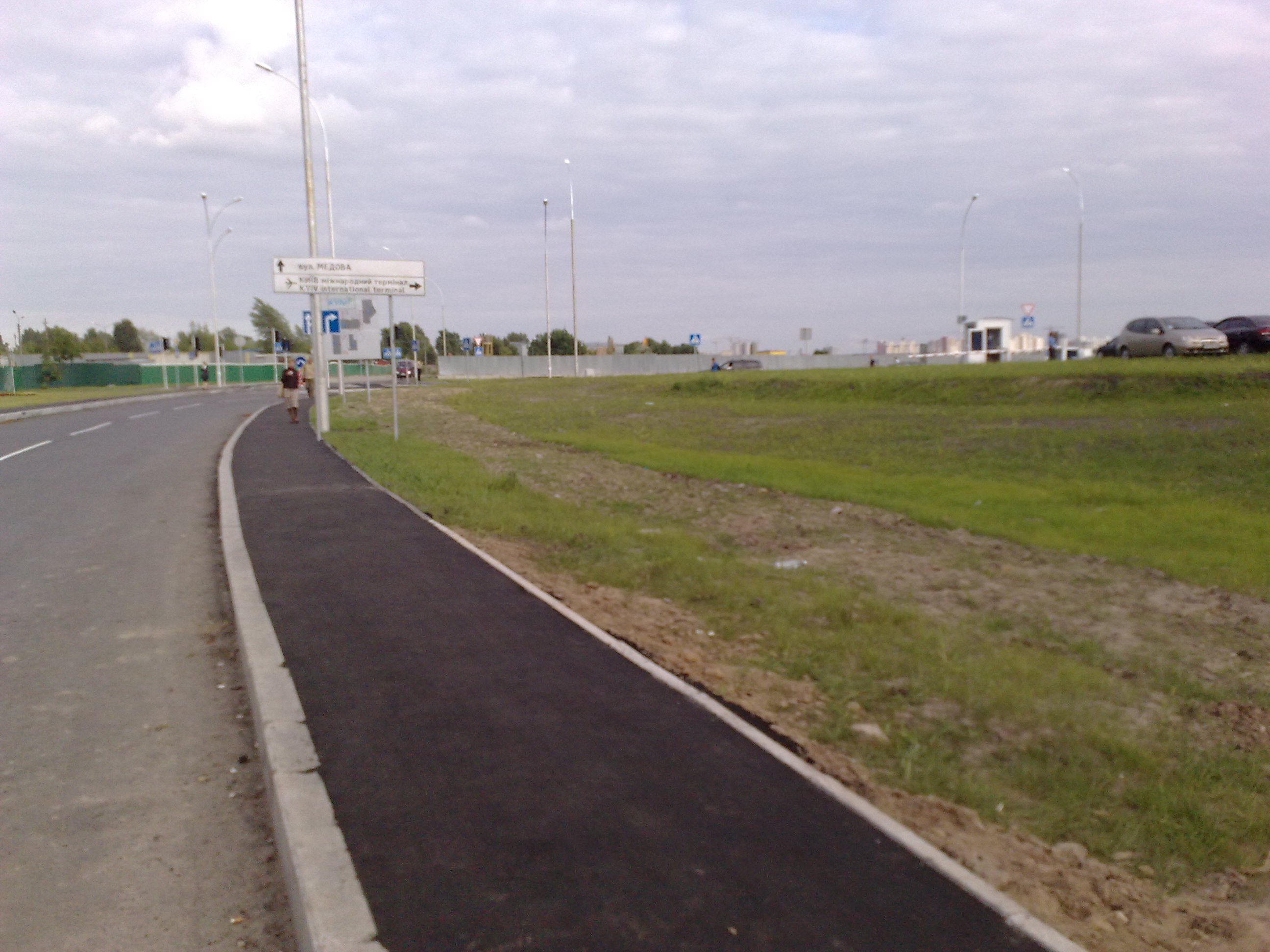 К остановкам заасфальтировали все, только около заезда на территорию Укрпочты оставили "земляной заезд" (типа не их), так что паксы активно используют тротуар по прямому назначению...