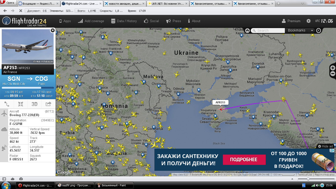 Что-то рейс AF 253 Хошимин - Париж летит в сторону Крыма, это глюк? Или уже можна иностранным компаниям летать над Крымом?