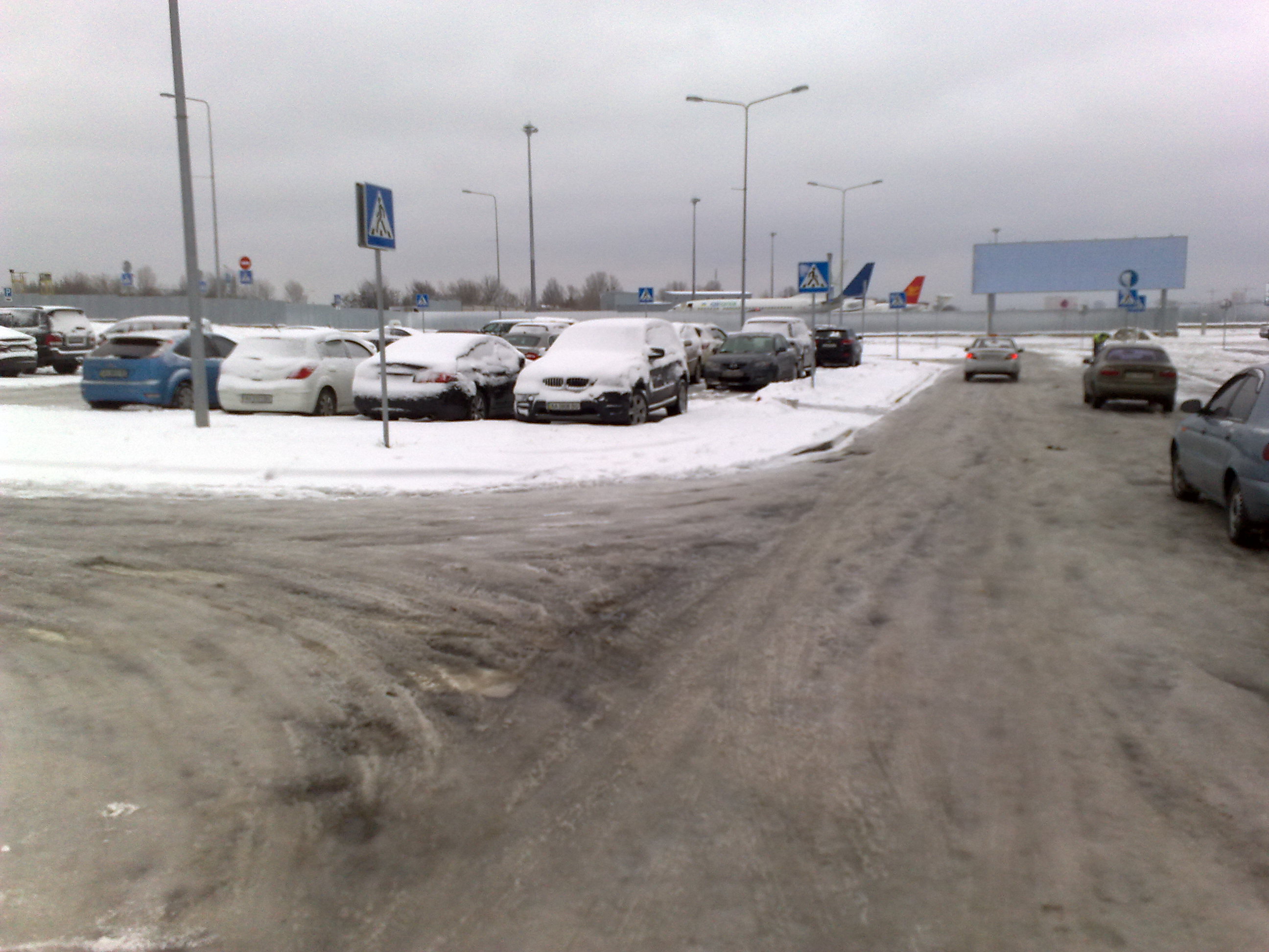 Что около А терминала (9-00, 04/12/2012), что около В терминала (12-00, 04/12/2012) всё в ледяной корке и ледяных кочках.