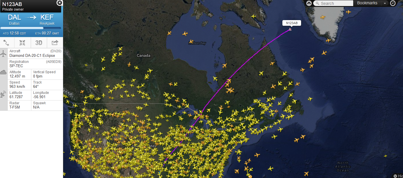 Немного опередили меня, я как раз полез в Earth, соединил города прямой линией. И вот, что вышло. Вот такую иллюзию создают плоские карты, а потом удивляешься, как всё на самом деле. Я-то думал, они избегают пересечения океана в широком месте или полёта над Африкой.
