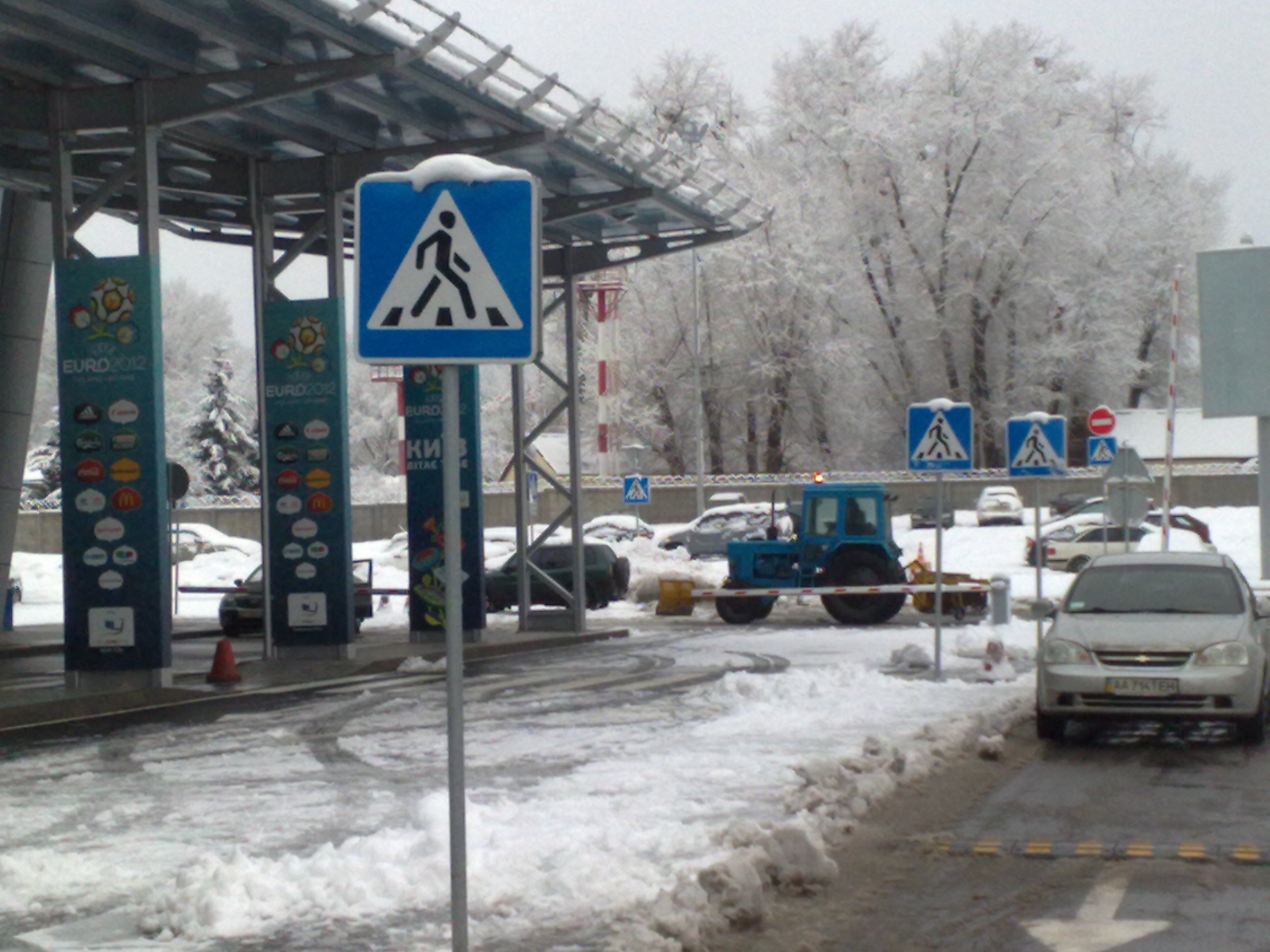 Даже возле терминала "А" дороги сподобились трактором почистить. Правда только дороги и специфически - островки-тротуары, на которые должны выходить пассажиры в снегу.