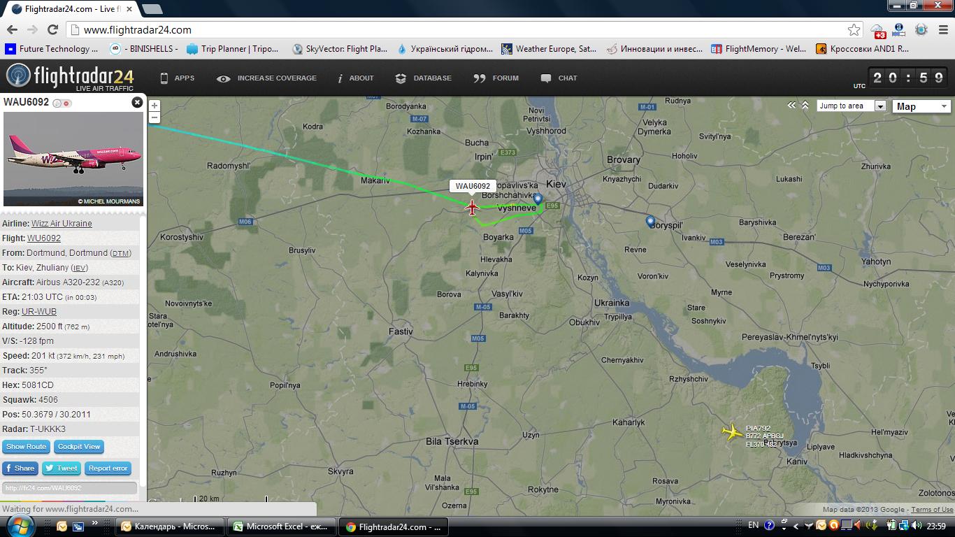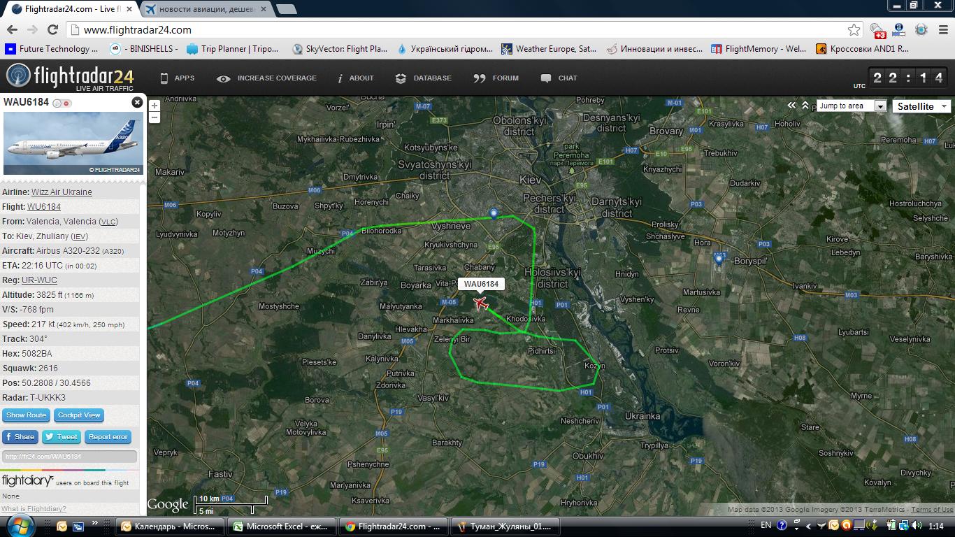 В Жулянах снова туман. Видимость 150м. Борисполь 550м. Трансаэро и AirOnix в зонах ожидания. Пилоты сообщили, что им нужна видимость минимум 600м. AirOnix ожидает 25 мин., если не улучшиться, то назад Симферополь (аннексирован Россией).