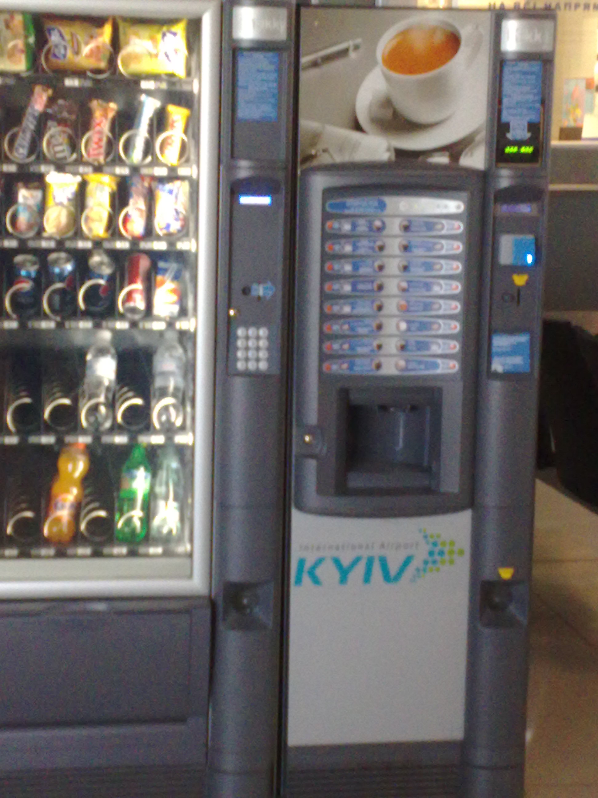 Брендированный кофейный автомат напротив стойки информации в терминале А.
