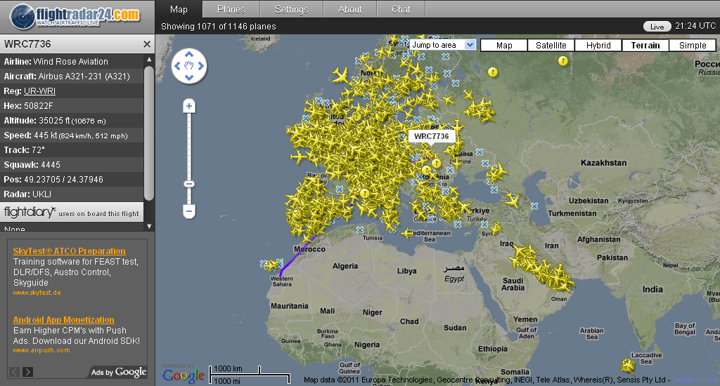 Уже непоказывае, за то до этого показало 3 пролитевших самолета по радару URKK, а теперь непоказывае.MelHimic писав:http://www.flightradar24.com/