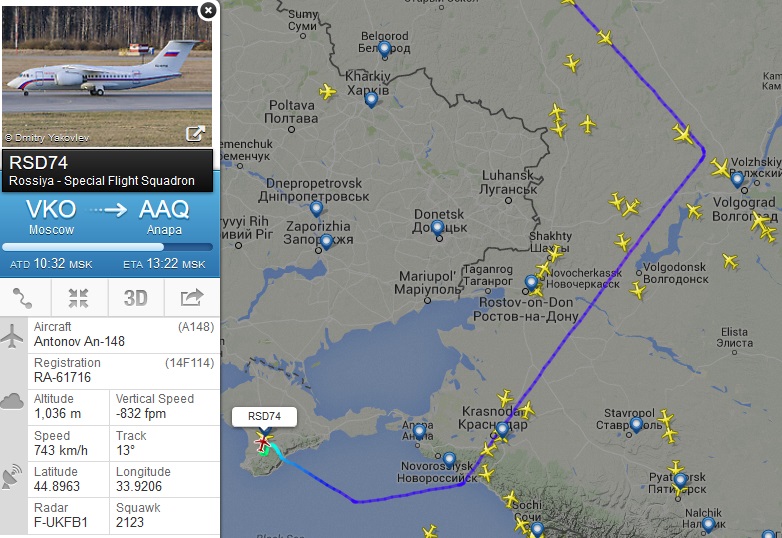 Странный рейс. Сильно облетал Донбасс. Промахнулся мимо Анапы.