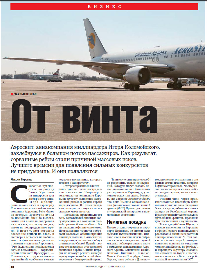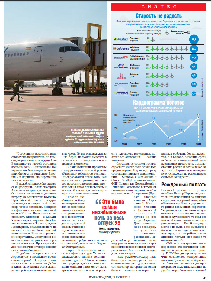 Клон теперь эксперт авиации :) А если серьезно, удивляет, что о задержке ЛОТа не упомянули, как и о монополисте в Западную Европу, из которого торчат уши мистера К. Скан свежего номера Корреспондента.