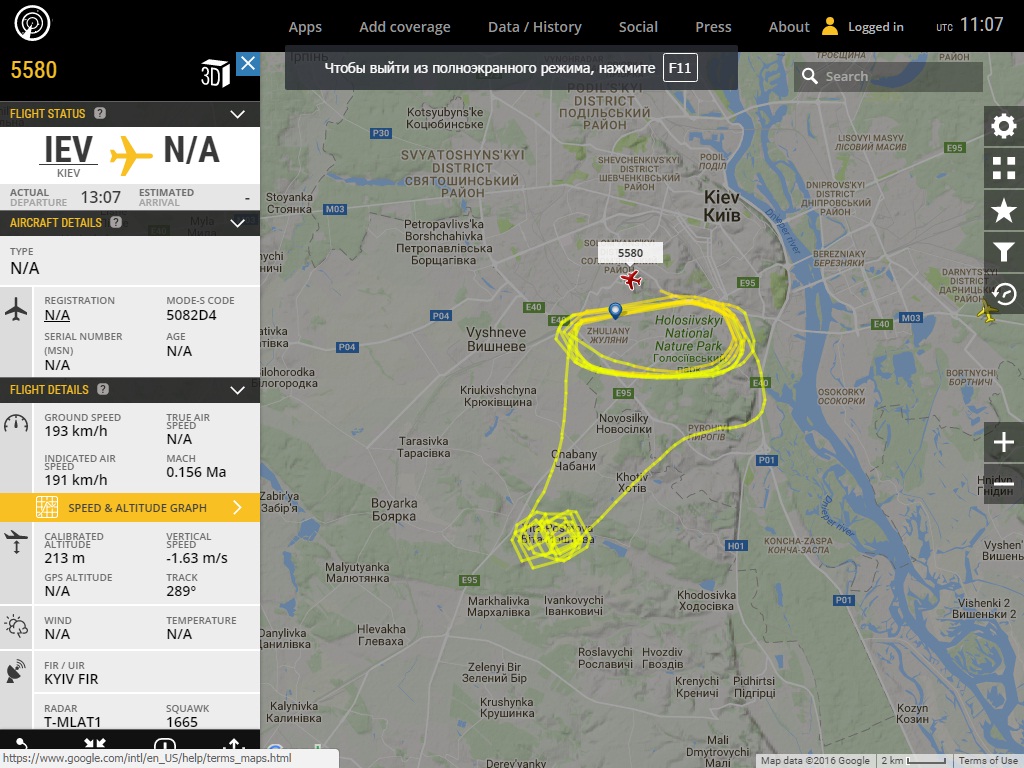 Под похожим кодом на прошлой неделе наматывал круги Diamond DA-42, частный самолетик. Лично наблюдал.UR5XCS писав:Код мілітарний ,але не ідентіфікується,розлякав піденно-західний район Києва та зник на малій висотіdevmind писав:Похоже на военный борт. Возможно, "пациент" 410-го завода.UR5XCS писав:Хто це... лампочку намалював ?