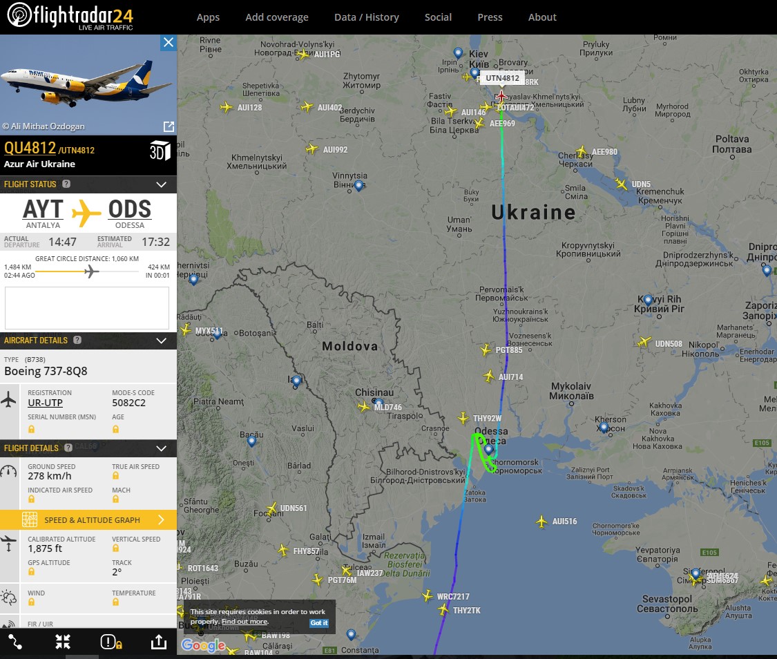 Прокрутите на этом сайте на сутки вперед. Думаю, в Одессе завтра также никто не сядет.