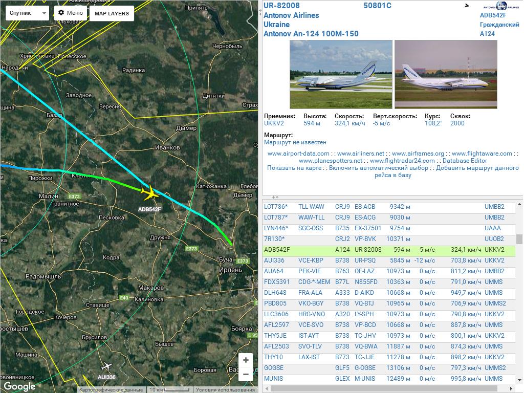 Один сайт - Флайтрадар24 знаю, а что за второй сайт на русском языке что все так подробно с права описывает??? можно ссылочкуUR5XCS писав:Мене злякався і повернув на західKKS писав:UR-82008, з Святошино. Можливо модернізант анти-російський