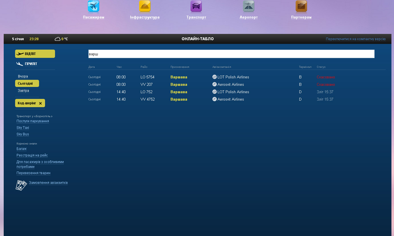 Самолет Аэросвита застрял в Варшаве в пятницу. Вчера вылетел, но не прилетел. Сегодня был отменен один рейс на вылет из Борисполя и два рейса на прилет из Варшавы.