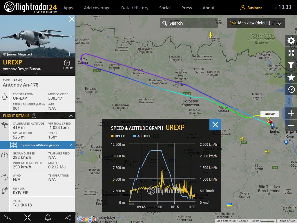 Пройшов "над головою" на висоті 3000м UREXP Antonov An-178 , мій радар його вхопив за хвіст