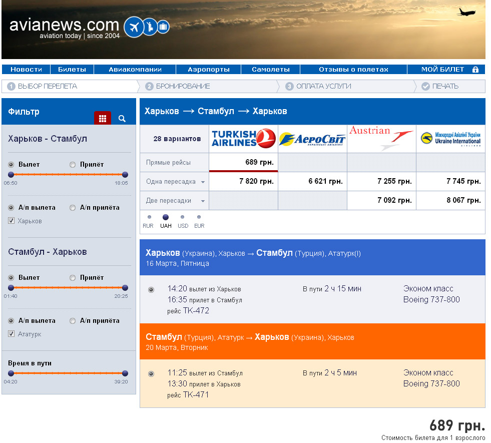 Акция Харьков-Стамбул-Харьков за около 700грн.