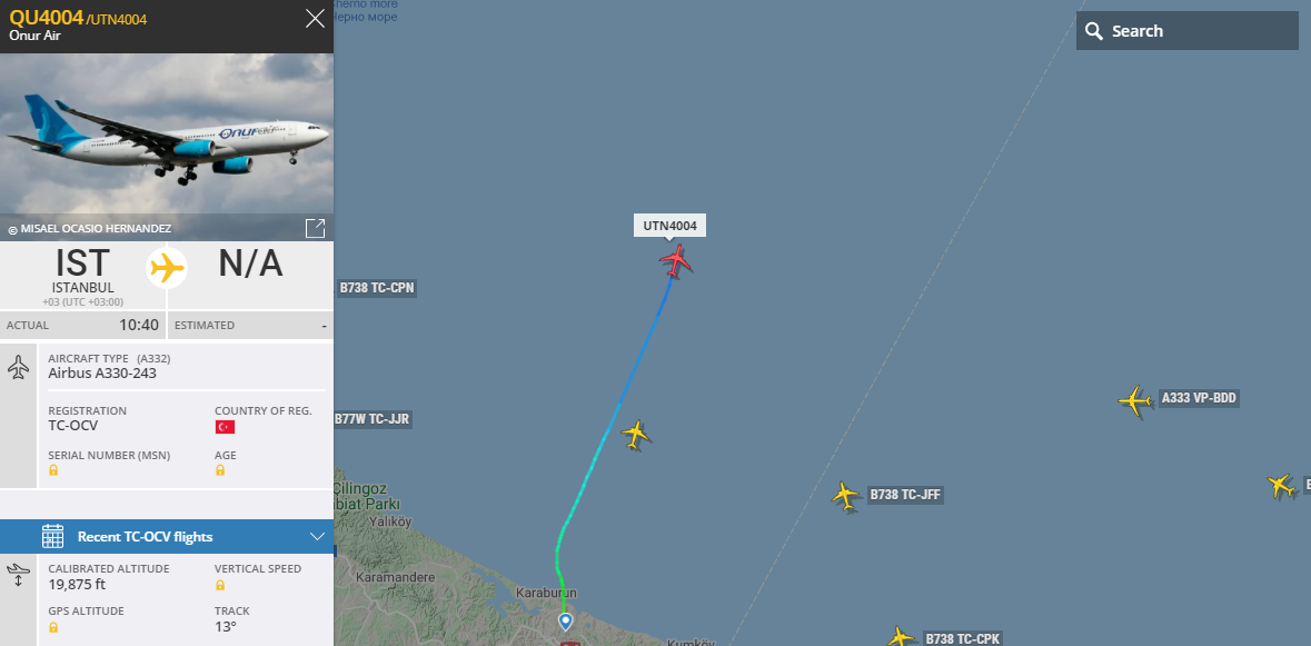 Azur Air на рейсі з Анталії в Київ використовуює Onur air борт tc-ocv.Стюардеси мовчазні, і нашу мову не розуміють)