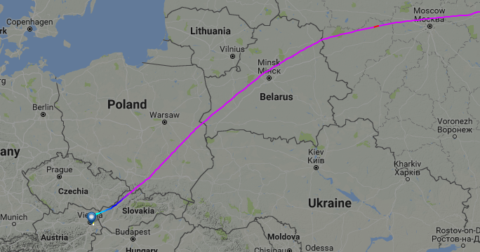 В той же час CA939 (Air China, Пекін-Рим, пролітає над Віднем) все так же летить північним шляхом в обхід України.