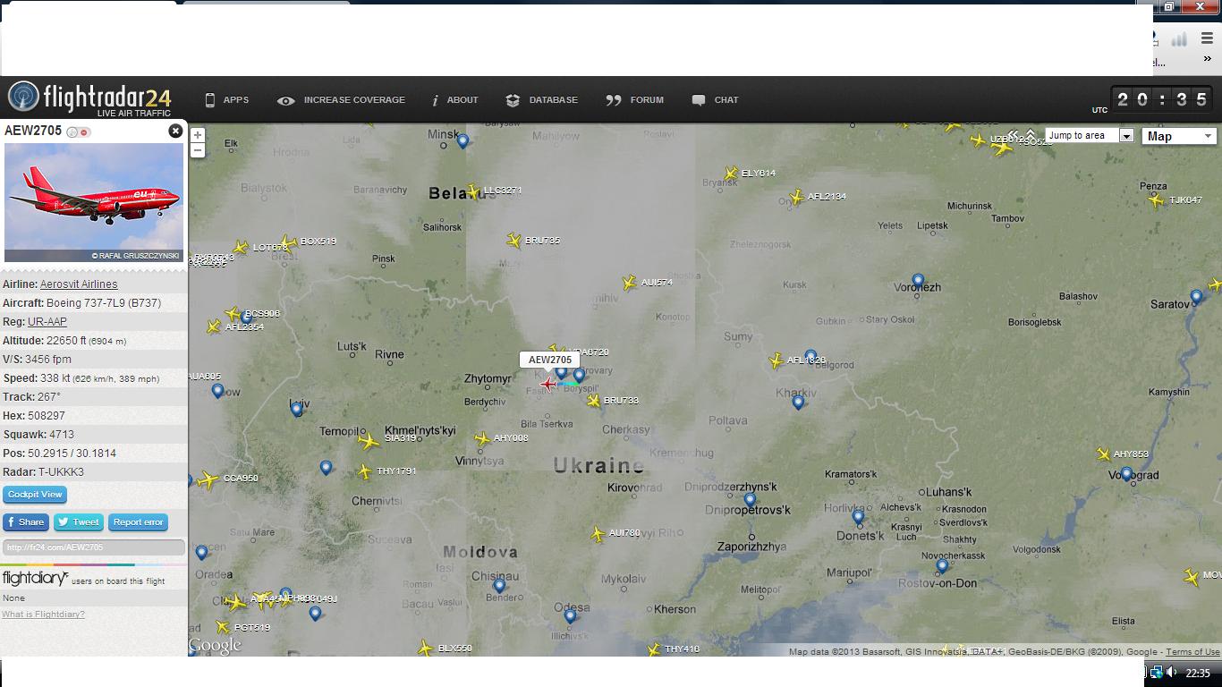 Boeing 737 -76N 28013 682 UR-AAQ AeroSvit Airlines ferried 06feb13 KBP-TLL after storage