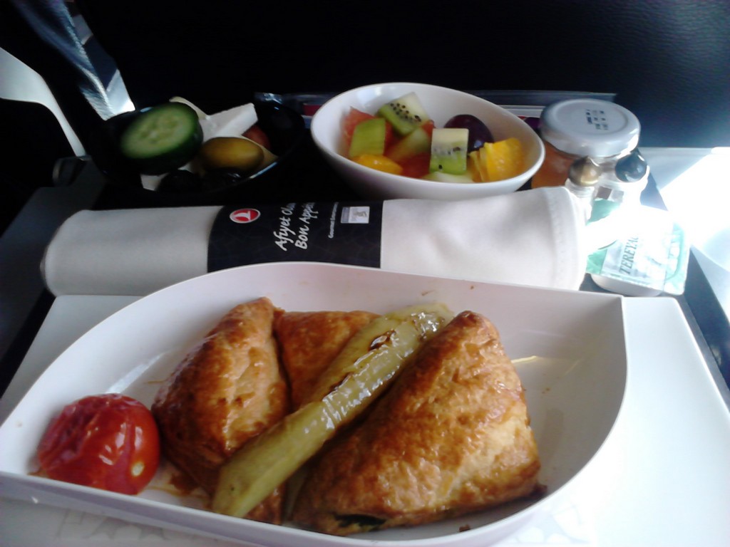 Горячее питание на внутреннем рейсе! Курица/рыба на выбор, помидорки/огурцы, кекс, булочка, масло. Вода, соки, чай/кофе.