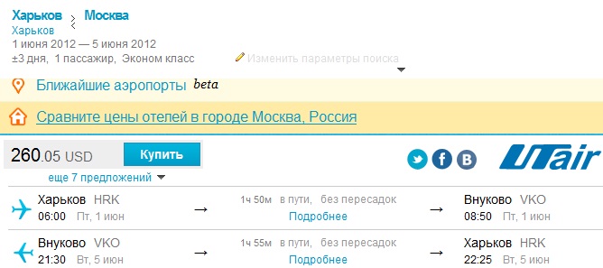 Это они сейчас белые и пушистые, когда АФЛ на горизонте нарисовался. А еще год назад ломили такие цены, что будь здоров - как-то довелось поинтересоваться, но пришлось отказаться от полета по причине явно неадекватной цены. Да и лететь на турбовинтовом самолете не то, что на реактивномpilot73950 писав:На счет сети согласен, а вот с их 400$ RT - извольте!!! 260$ это отнюдь не 400$!