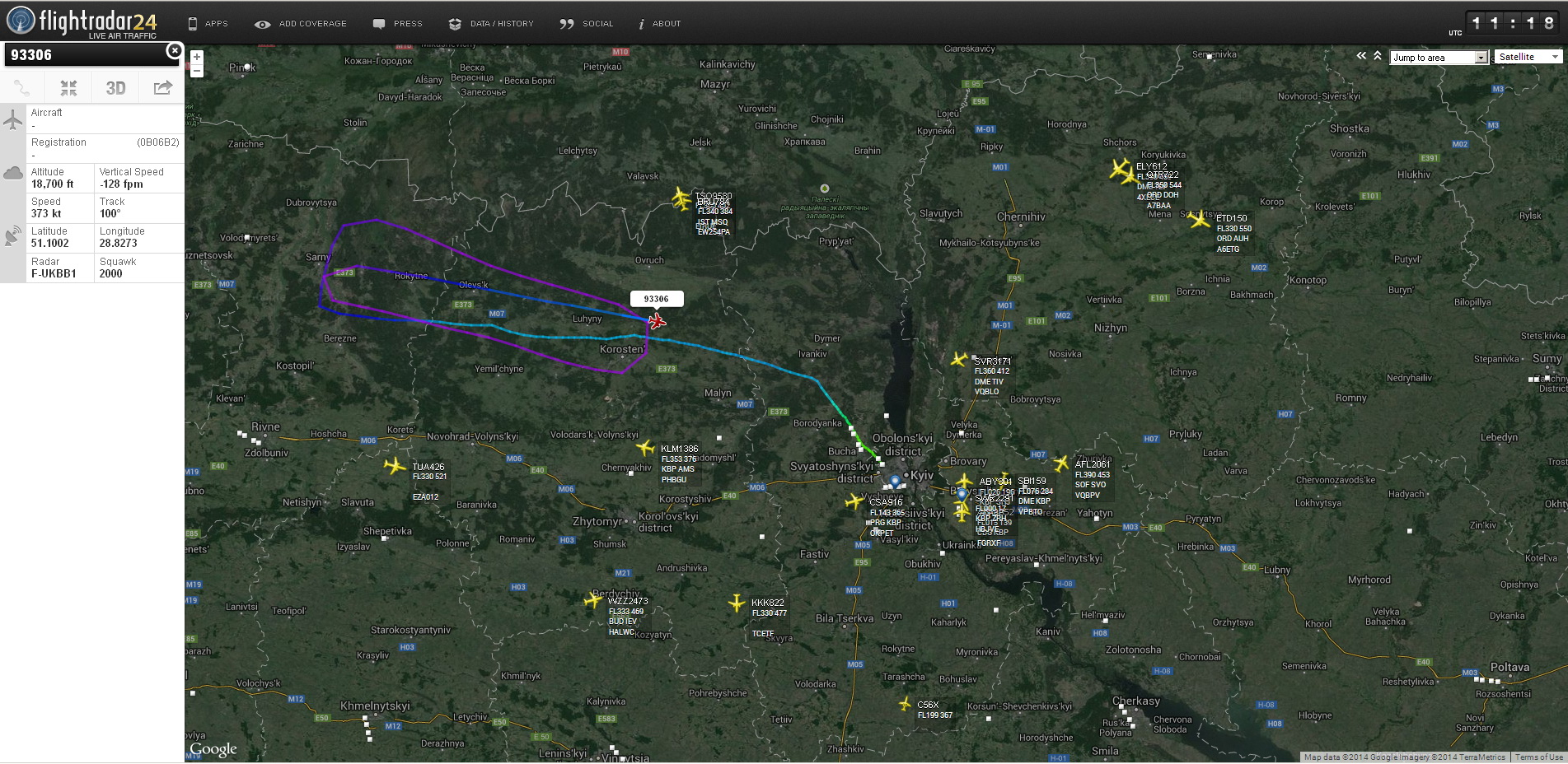 Ще раніше сьогодні літак, тип якого і реєстрація на ФР24 не відображається, летів з Маріуполя в напрямку Києва...