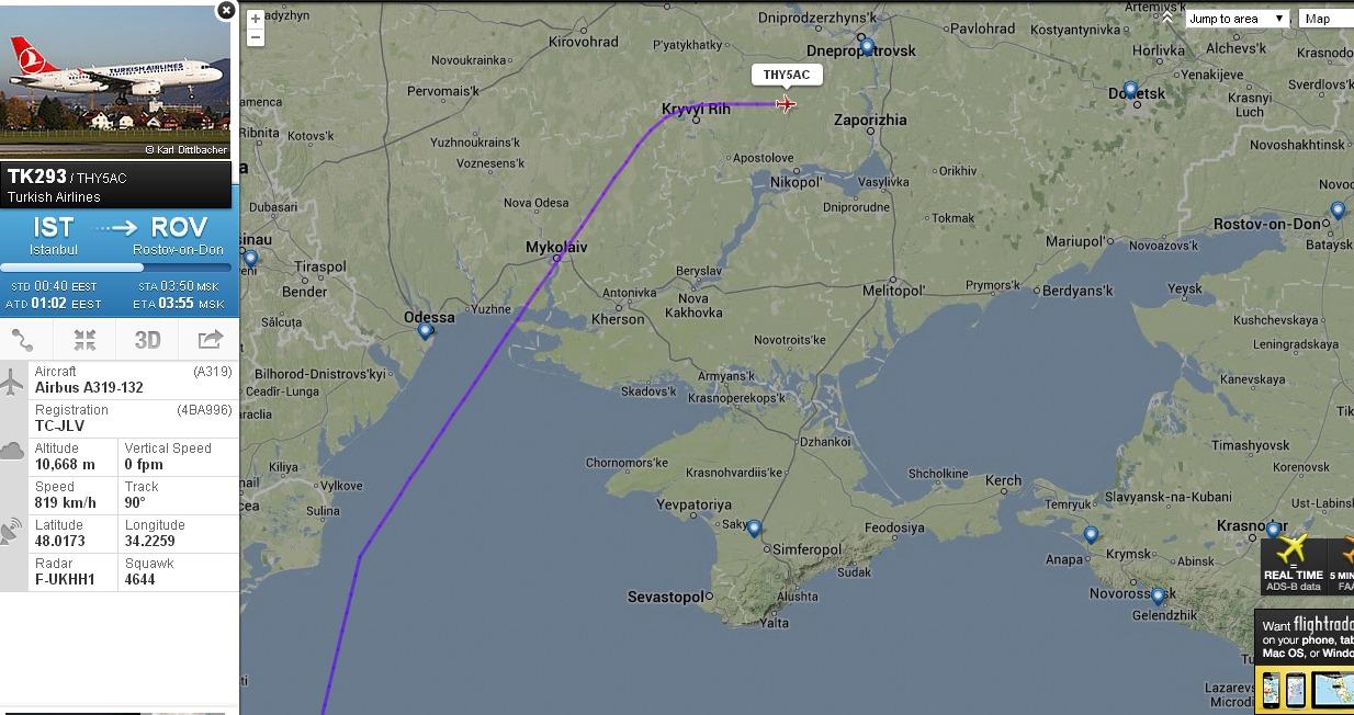 МАУ, кстати, кавказские и ближневосточные рейсы летает точно по прямой - Керчь-Кривой Рог-Киев.