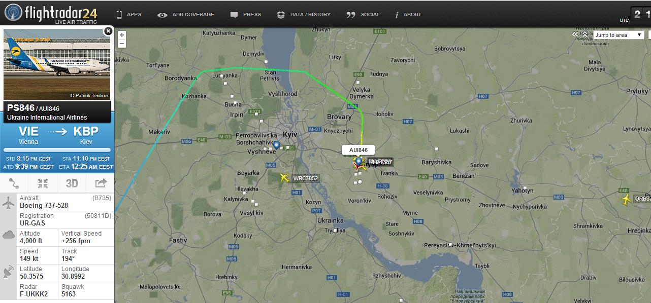 В Киеве сильная гроза. МАУ ушел на второй. За МАУ ERJ145 с Динамо Киев, тоже ушел на второй.