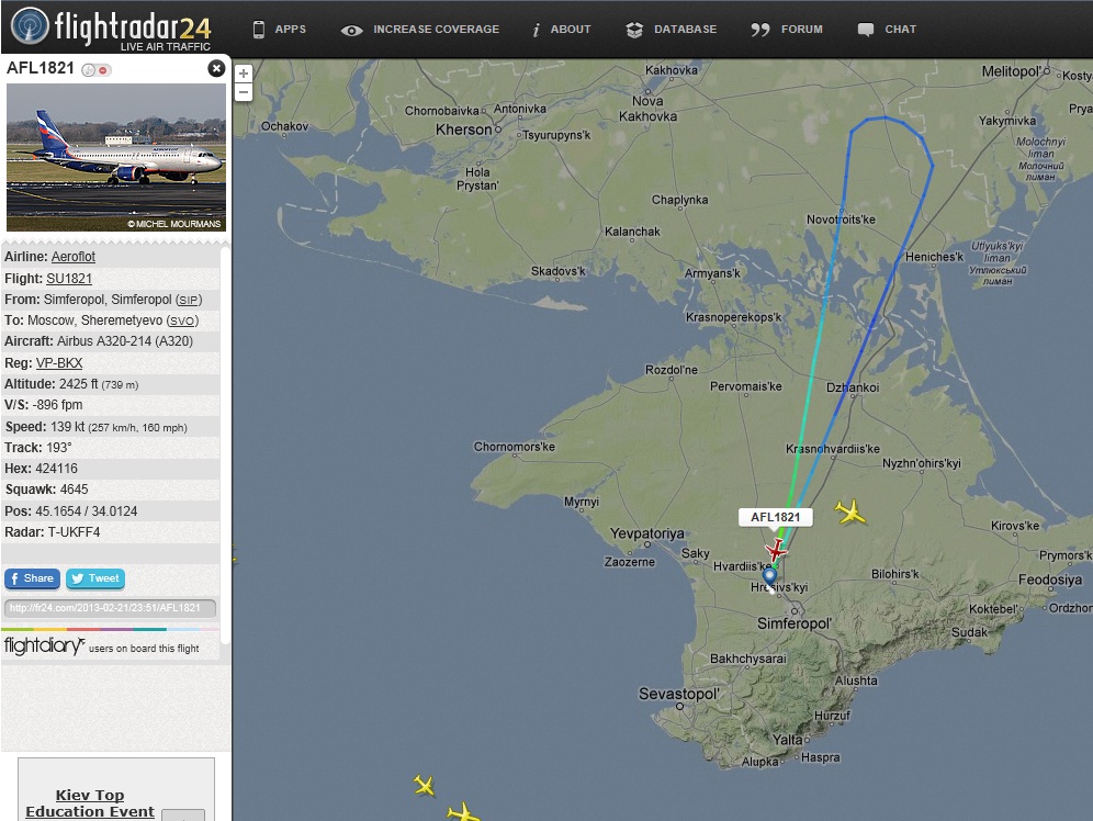 Прилетев утром в SIP (аннексирован Россией), удивился, обычно в это время бортов Аэрофлота нет. Потом уже новость прочитал.