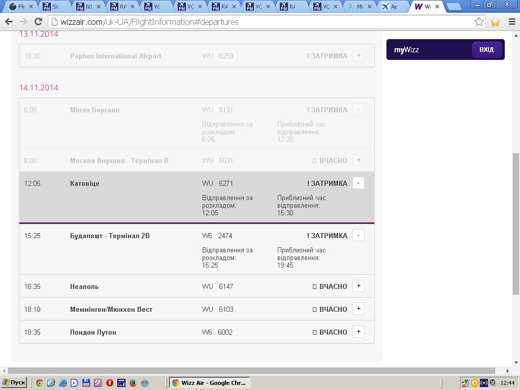 Погляньте "СТАТУС РЕЙСУ" на сайті Віз-Ейру, вище я давав скрін.... Там усе добре зрозуміло...