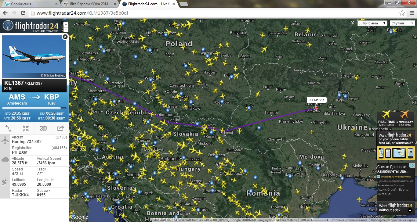 Сейчас через Украину идут Трансаэро 744 Родос-Питер и Аэрофлот 320 Ницца-Москва