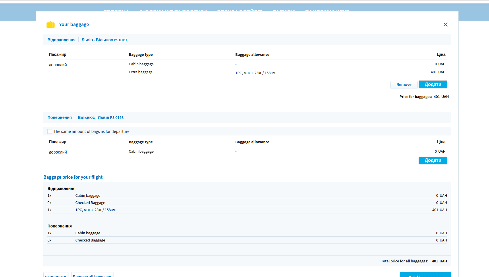 Я думал уже после оформления билета появилась возможность добавить багаж.Airfan писав:В процессе бронирования (следующий этап после выбора тарифа) у Вас есть возможность добавить багажOlek писав:Как вы перешли на страницу, которая на вашем скрине?makor писав:Вауу) Не прошло и года. На сайте МАУ можно добавлять багаж в билет.