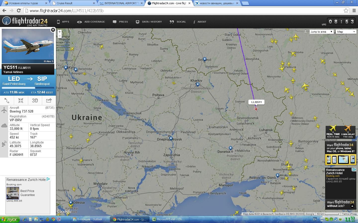 Такое возможно. Но кто согласовал полет в закрытый украинскими авиавластями Симферополь (аннексирован Россией)?Olek писав:Возможно, наши открыли воздушное пространство? Просто как-то синхронно все полетели в один день.