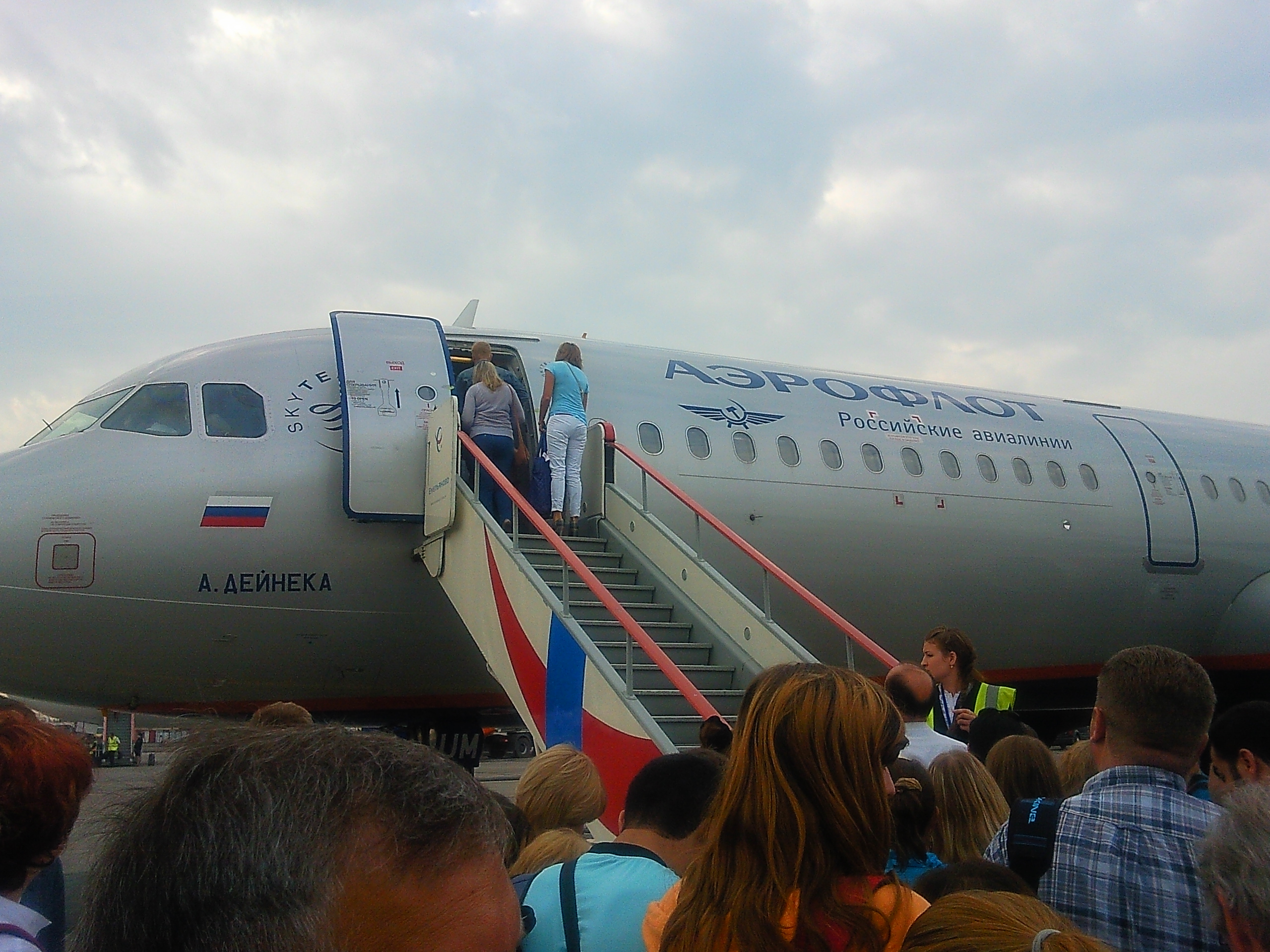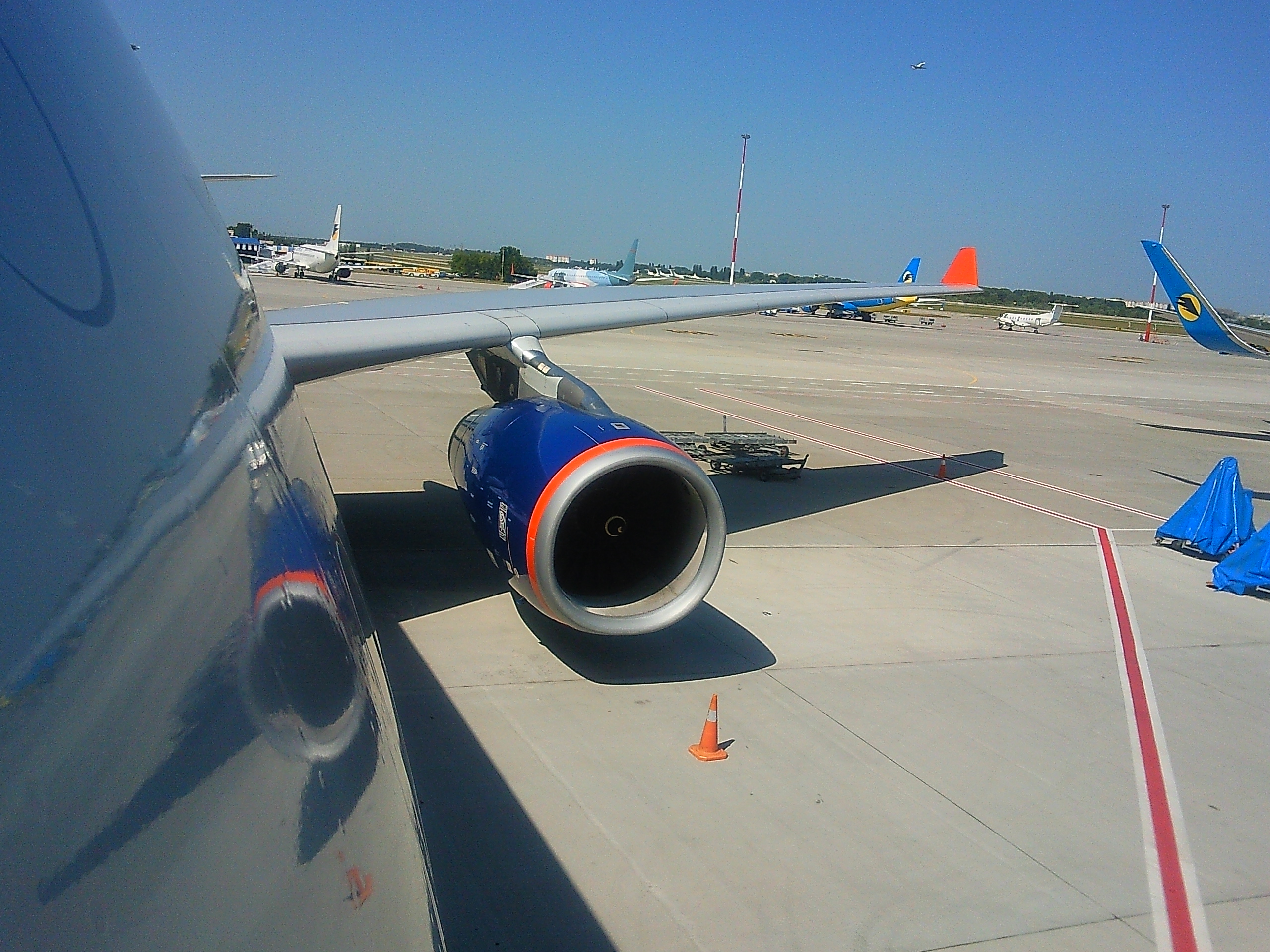 Сидя в Борисполе в зоне ожидания, проверил flightradar и увидел, что самолет идет с опозданием. Это немного расстроило, но в Москве у меня стыковка 2,25часа, поэтому все должно было получиться. Пилот очень спешил в Борисполь, так как на рейс в Москву обычно много транзитных пассажиров, которые могли не успеть. Видимость позволяла зайти визуально на 36 правую, что я успешно наблюдал из зала ожидания. Опоздание все равно составило 30 минут. Ну да Бог с ним, вроде бы успеваю, к тому же самолету всего 3 мес., новые кожаные кресла Recaro, мое любимое место 20F.Приятный взлет, хорошая погода, целый 20-й ряд пустой – все ок. Но на подлете к Москве случился ньюанс. Пилот очччень спешил и сделал следующее: на высоте где-то 4км. Он выпустил закрылки во взлетный режим, добавил на половину speed brakes и выпустил ШАССИ!!!! И начал стремительное снижение для визуального захода. Сначала я не поверил своим ушам и все ждал на глиссаде, что вот сейчас будет характерный звук от выходящего шасси, но его не было. Пилот действительно выпустил его на высоте для торможения. То беж минут 10 до посадки мы уже летели с выпущенным шасси. Не знаю, насколько это опасно, знаю, что первый тест полет самолета делают с выпущенным шасси, но насколько допускает такое. Короче мы сели довольно плавно и сразу же экстренное торможение для попадания на ближайшую рулежку, так как время. Но Шереметьево готовило облом: все слоты и гейты были заняты и нам пришлось еще 40 минут сидеть в самолете... Большая половина транзитных уже опоздала, у меня оставался 1.15ч и все-таки какая-то надежда. Но нужно было бежать в терминал Д и все-таки была пятница, народу тьма. Паспортный прошел минут за 5, за 10 домчался до терминала Д и тут ждала огромнейшая очередь на проверку багажа. По своим прогнозам оценил, что буду стоять минимум минут 40, а то и более, но за 15 минут уже был в переполненном зале ожидания. Слава Богу самолет на Красноярск также задержали на 30 мин., поэтому точно успевал. Но раздражали толпы народу, жара и то, что за 15 мин. до посадки на рейс сменили гейт и пришлось протискиваться по переполненному залу ожидания с одного конца в другой. Короче аэрофлот+Шереметьево в пятницу дали сбой.