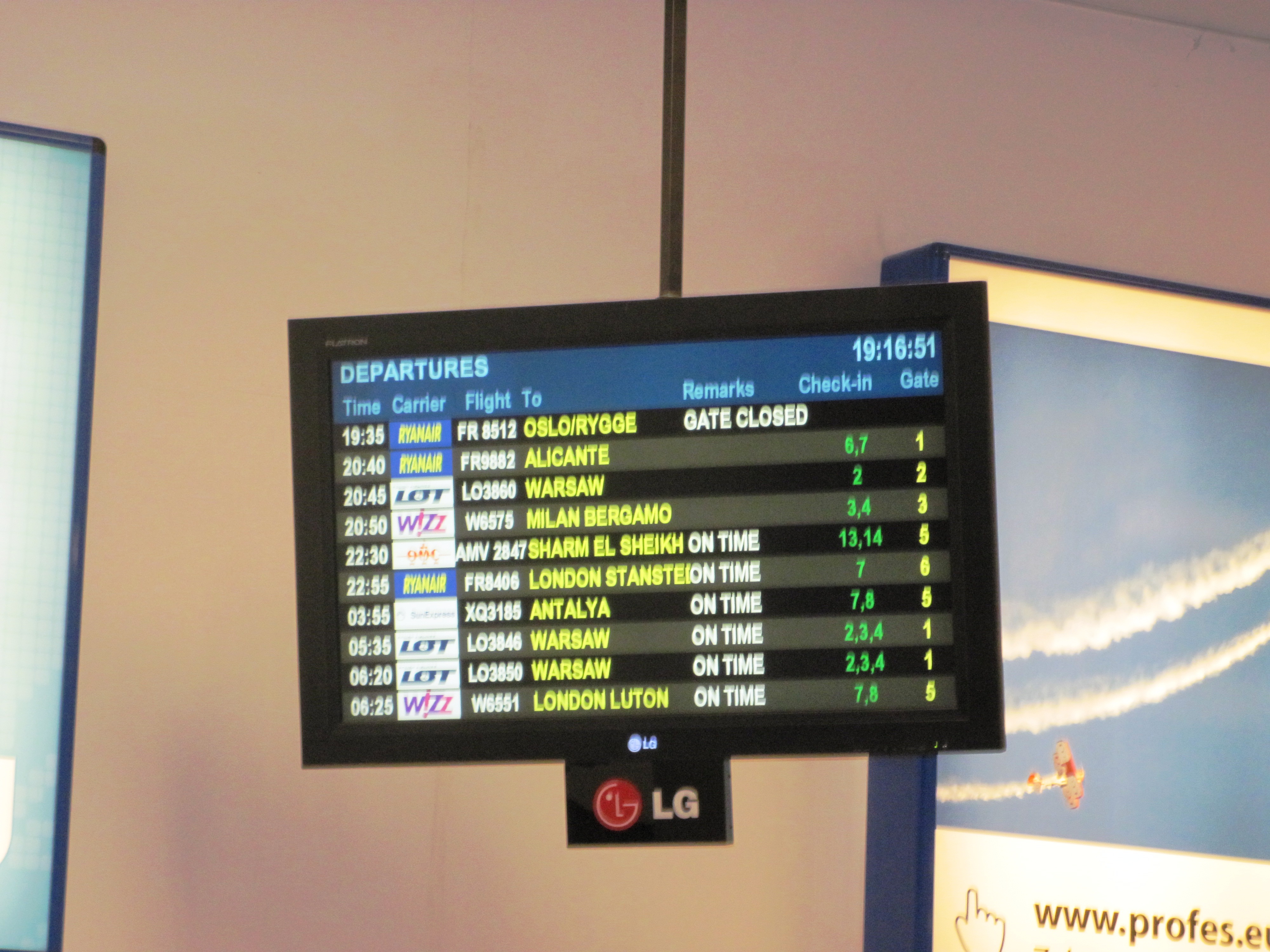 Вилет Визза с маленького накопителя (в котором есть всё нужное для ожидания). С аэропорта часто летает и Ryanair. Лот в основном на Варшаву + чартеры.