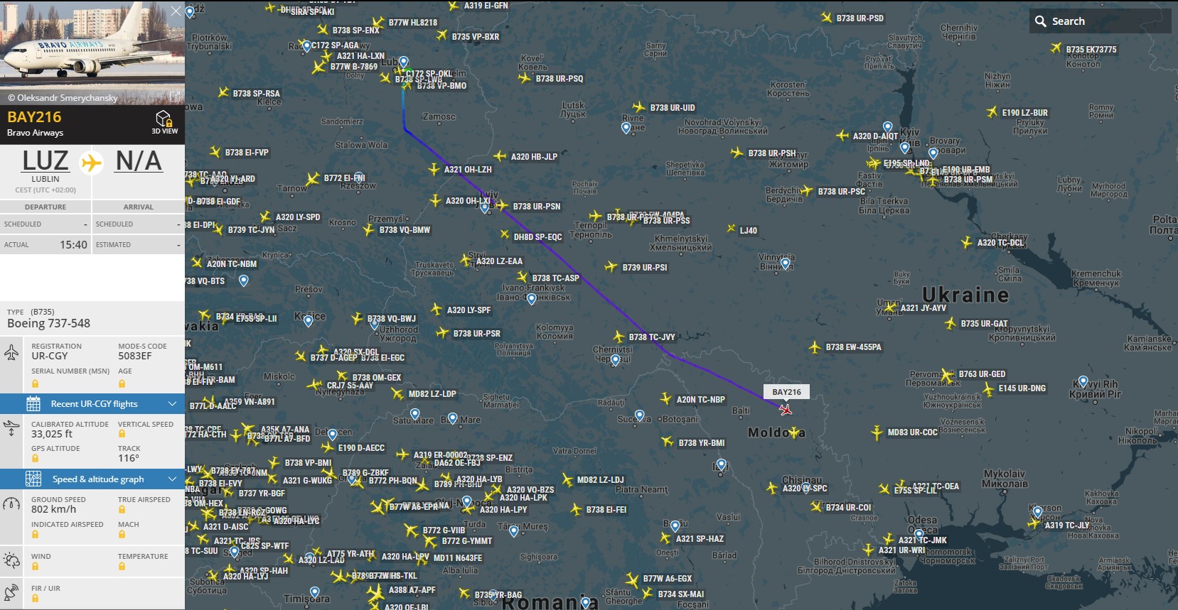 На весь день сьогодні UR-CPR стояв в системі польотів Eurocontrol на виконання рейсів у впродовж дня.