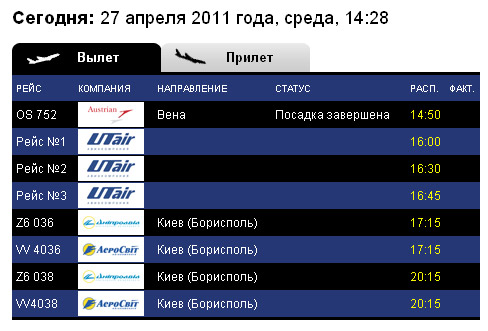 круто! и он-лайн табло, смотрю, таки показывает и чартера )
