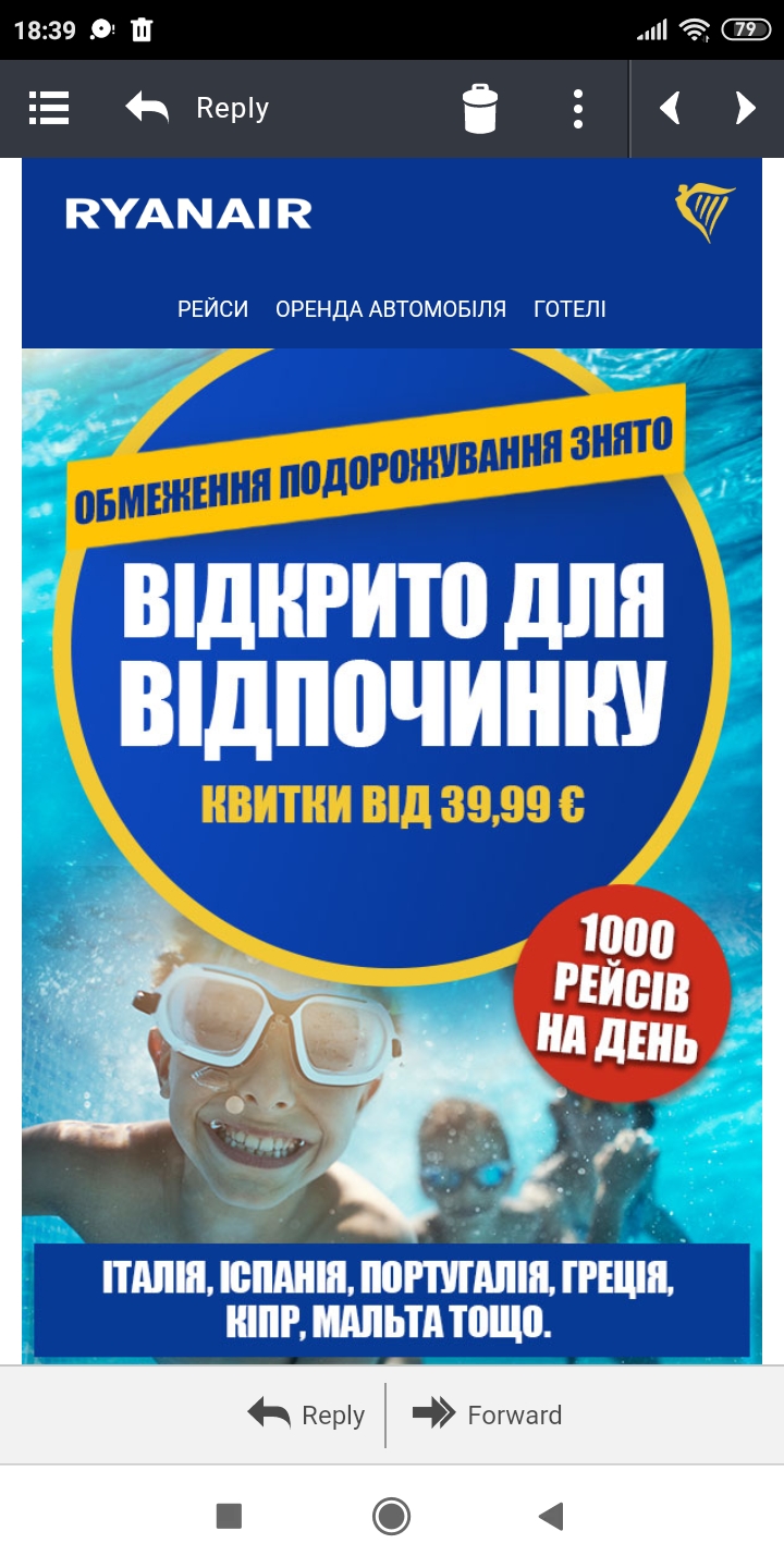 Ловите инсайды. Ryanair получил продленное разрешение на полеты между Украиной и Италией до конца летнего сезона 2020 года.