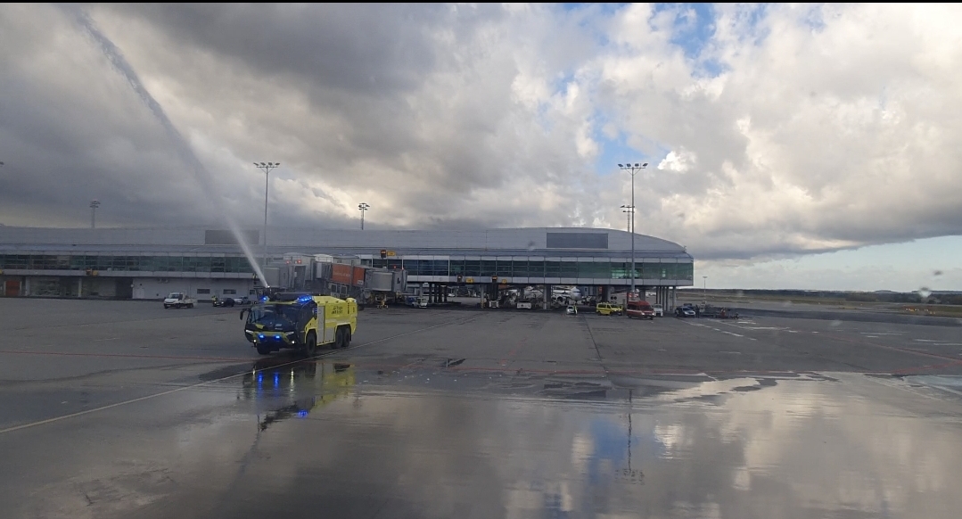 Посадка через телетрап, короткое руление и взлёт ранее расписания. Загрузка около 50 человек, приятный экипаж во время обслуживания предлогал водичку.