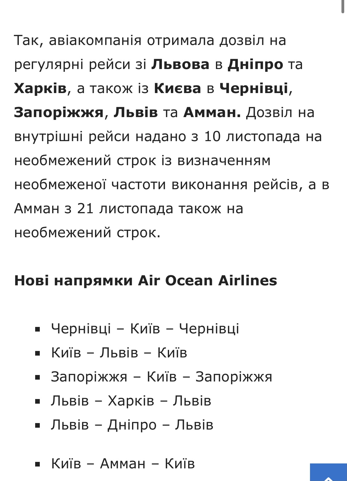 Ого. Це вже цікаво. Невже це так Слуги хочуть електорат чернівецький втримати. Особливо, враховуючи, що вони в області не дуже стабільніpopTAB писав: ↑03 листопада 2021, 09:48 1. Надати ТОВ «АВІАЦІЙНА КОМПАНІЯ «ЕЙР ОУШЕН ЕЙРЛАЙНС»