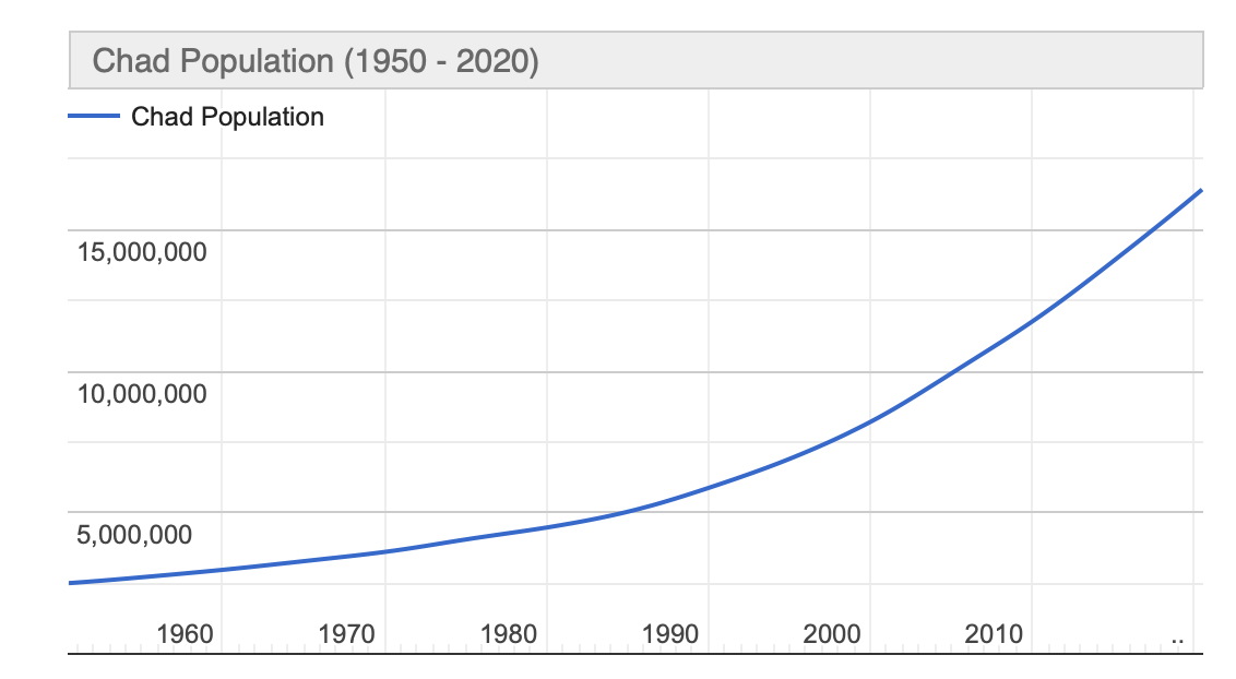 При этом, доступность еды в Чаде за последние 20 лет на самом деле улучшилась, см график. В 2000 году индекс был 50.1. А как с населением в Чаде?According to the Global Hunger Index 2020, which was adopted by the International Food Policy Research Institute, Chad was the most affected by hunger and malnutrition, with an index of 44.7.