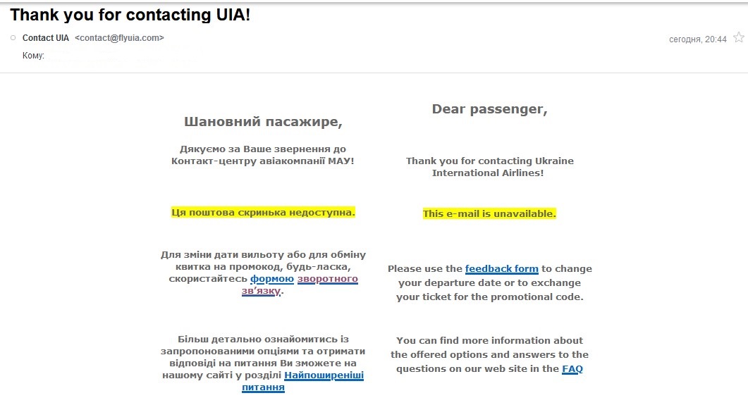 Потім є ймовірність того, що МАУ напише про якісь проблеми саме з вашим банком, але через певний час напише, що кошти перерахували, але треба буде почекати.