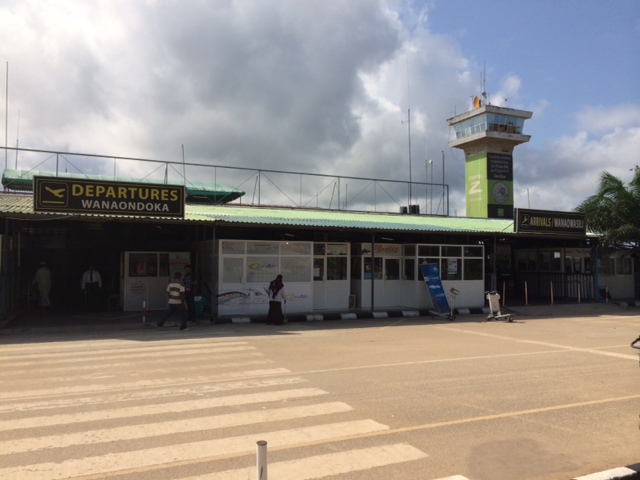 В аэропорт Занзибара мы приехали примерно за полтора часа до назначенного времени вылета. Прошли досмотр на входе в терминал, представляющий из себя постройку типа ангар с залами вылета и прилета на первом этаже и рестораном с обзором летного поля на втором. Вместо электронного табло есть доска, на которой маркером написано расписание рейсов. Над стойками регистрации опять же нет экранов, как мы привыкли, вместо этого висят картонные таблички с названиями авиакомпаний, при этом над одной стойкой табоичек может висеть несколько.