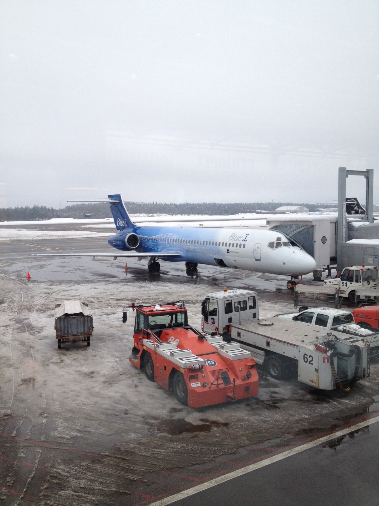 Сели в соответствии со временем, заявленным в расписании. В аэропорту Арланда нет как такового разделения на зоны вылета и прилета в чистой зоне (если мы говорим о внутриеаропейских рейсах), поэтому на гейтах прилетающие и улетающие пассажиры смешиваются, транзитной зоны нет. В частности, наш борт через 35 минут после посадки улетал обратно в Копенгаген.