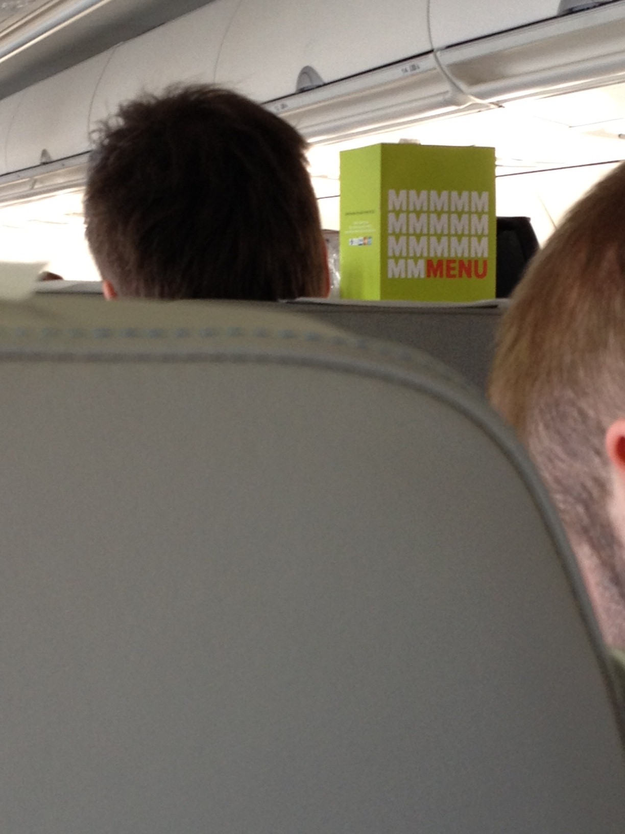 Во время взлета и полета экраны не закрывались и на них все также траслировалась картинка с передней камеры. Спустя 10-15 минут после взлета старший бортпроводник рассказал о доступном на рейсе меню. Бесплатно предлагали чай, воду и кофе. Цены на борту для понимания следующие: сэндвич стоит 7 евро, салат 9 евро, кола и минеральная вода по 3 евро.