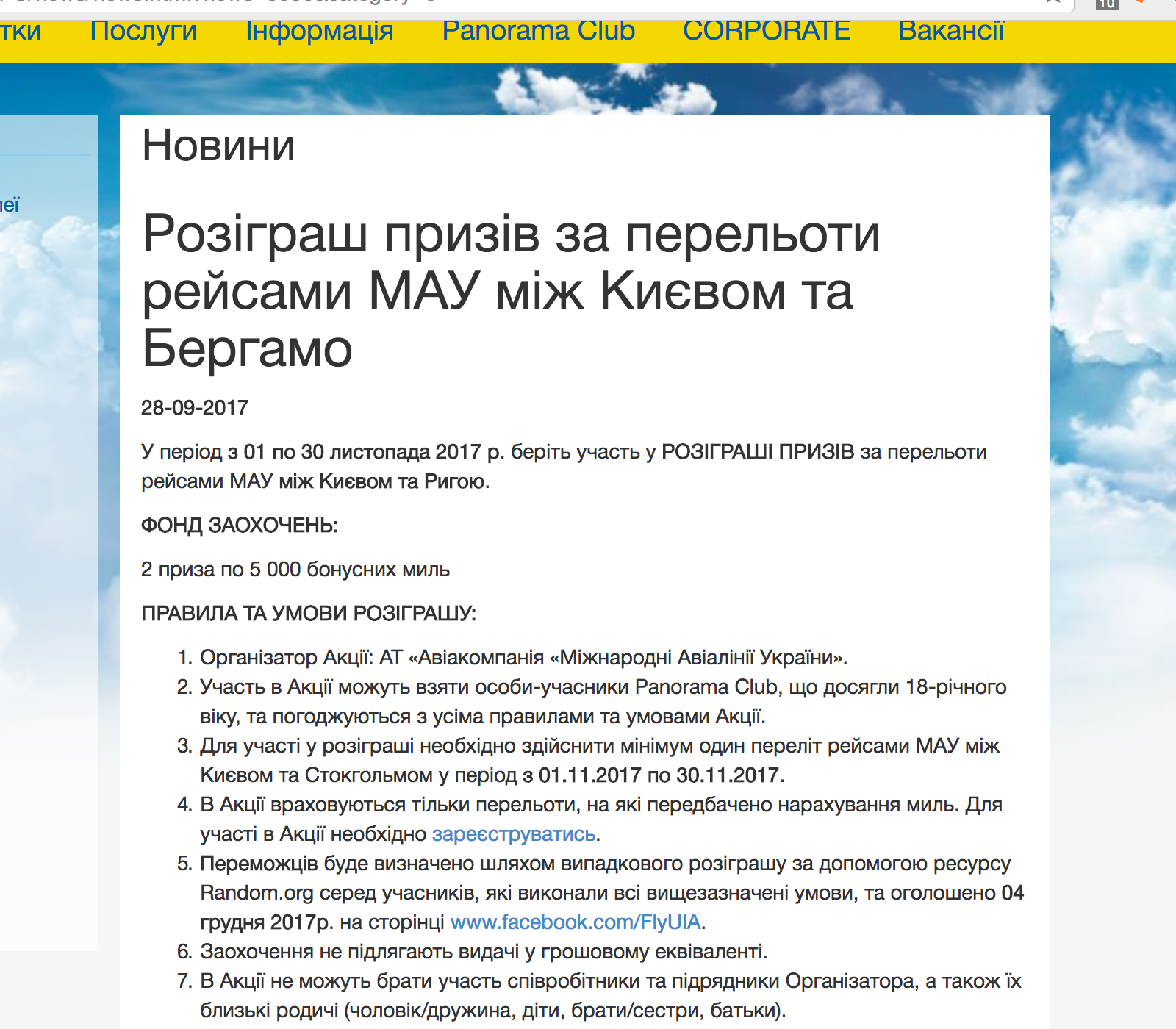 Розіграш призів за перельоти рейсами МАУ між Києвом та Бергамо