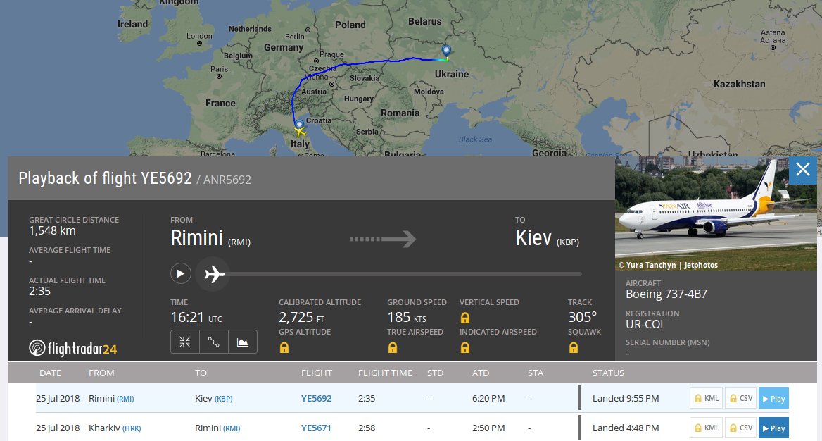 Написав вже вище, що не туди поглянув.cyclone писав: ↑26 липня 2018, 00:08 Как это "не вирушили"? Flightradar пишет, что уже призимлились в Киеве рейсом YE5692 из Римини.