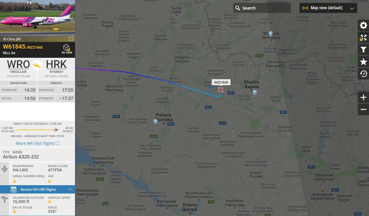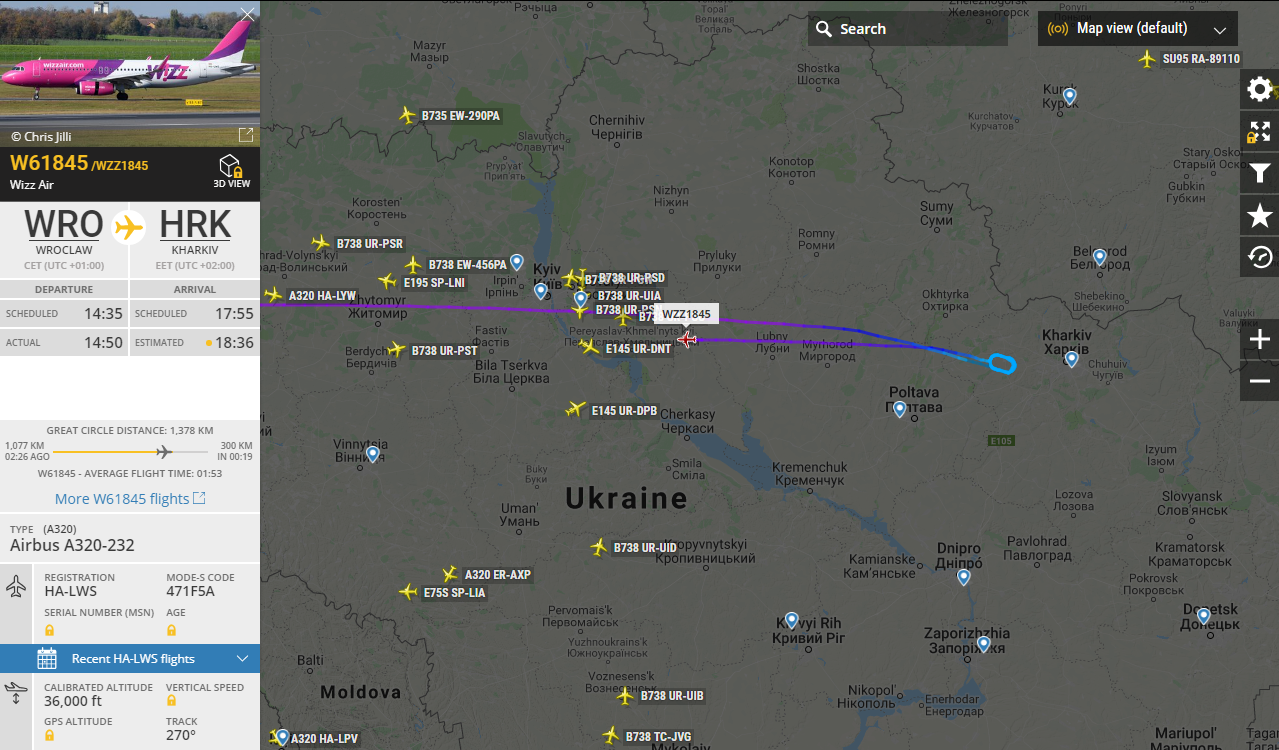 UPD. На ордин вопрос я нашёл ответ. Похоже, он высадил харьковчан в Жулянах, улетел пустым во Вроцлав и продолжил своё расписание, доставив людей в Бирмингем с опозданием всего 55 минут. Кстати, не знал, что аэропорт Вроцлава находится в Страховице, прям как Катовице, который в Пыжовице, только пострашнее )